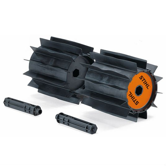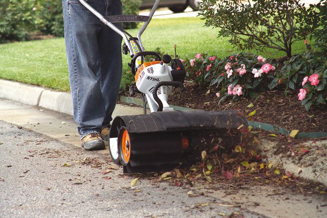 Насадка «підмітальний валик» легко очищає доріжки, вулиці та газони від бруду, сміття, листя чи снігу. Завдяки зустрічному напрямку обертання підмітального валика бруд із водою подається вперед. Забезпечує бездоганну чистоту терас та доріжок.