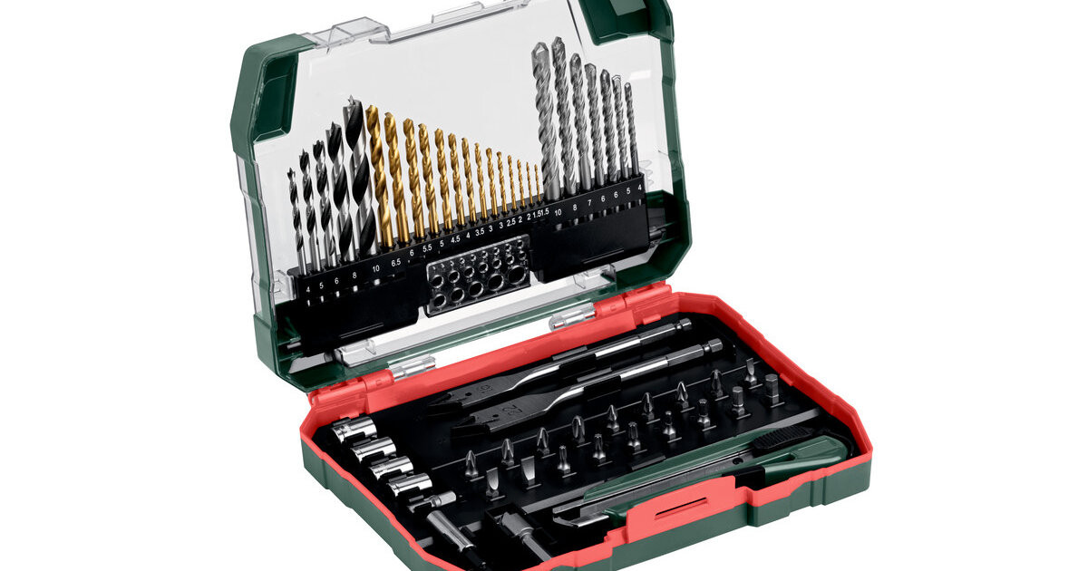 Складається з: Свердла по металу HSS-TiN (14 штук): 1,5 мм x 2, 2,0 мм x 2, 2,5 мм x 1, 3,0 мм x 2, 3,5 мм x 1, 4,0 мм x 1, 4,5 мм x 1, 5,0 мм x 1, 5,5 мм x 1, 6,0 мм x 1, 6,5 мм x 1Свердла по каменю з твердосплавними напайками (7 шт.): 4,0 мм x 1, 5,0 мм x 1, 6,0 мм x 2, 7,0 мм x 1, 8,0 мм x 1, 10,0 мм x 1Свердла для деревини (5 шт.): по 1 x 4,0 мм, 5,0 мм, 6,0 мм, 8,0 мм, 10,0 мм; Плоскі свердла для деревини (2 шт.): по 1 x 16,0 мм, 22,0 ммІнструментальні насадки S 2, L= 25 мм (18 шт.): по 1 x PH 1, PH 2, PH 2, PH 3; PZ 1, PZ 2, PZ 2, PZ 3; SL 4, SL 6, SL 7T 15, T 20, T 25; H 3, H 4, H 5, H 6; Торцеві ключі (4 шт.): по 1 x 7 мм, 8 мм, 9 мм, 10 мм1 x шаблон, 1 x ніж для шпалер, 1 x магнітний тримач інструментальних насадок, 1 x зенкер, 1 x перехідник для торцевих ключівВисокоякісний міцний футляр спеціального дизайну Metabo
