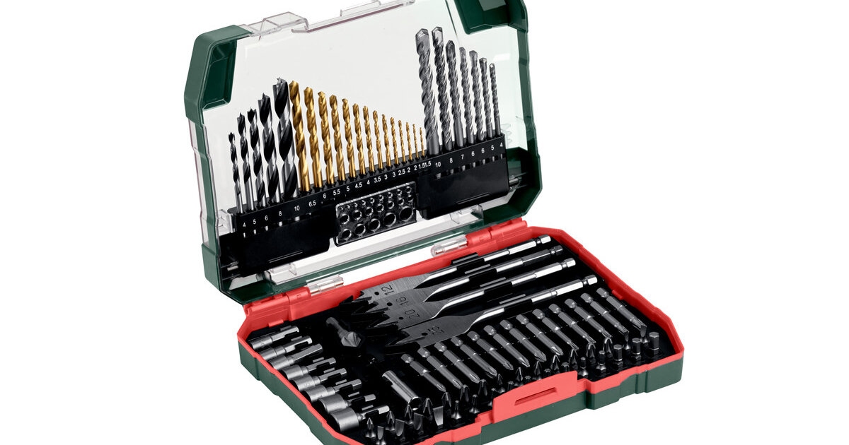 Складається з: Свердла по металу HSS-TiN (14 штук): 1,5 мм x 2, 2,0 мм x 2, 2,5 мм x 1, 3,0 мм x 2, 3,5 мм x 1, 4,0 мм x 1, 4,5 мм x 1, 5,0 мм x 1, 5,5 мм x 1, 6,0 мм x 1, 6,5 мм x 1Свердла по каменю з твердосплавними напайками (7 шт.): 4,0 мм x 1, 5,0 мм x 1, 6,0 мм x 2, 7,0 мм x 1, 8,0 мм x 1, 10,0 мм x 1Свердла по дереву (5 шт.): по 1 x 4,0 мм, 5,0 мм, 6,0 мм, 8,0 мм, 10,0 мм; Перові свердла по дереву (4 шт.): по 1 x 12,0 мм, 16,0 мм, 19,0 мм, 25,0 ммІнструментальні насадки S 2, , L = 25 мм (32 шт.): PH 0 x 1, PH 1 x 2, PH 2 x 2, PH 3 x 2; PZ 0 x 1, PZ 1 x 2, PZ 2 x 2, PZ 3 x 2; S 3 x 1, S 4 x 2, S 6 x 2; S 7 x 1; T 10 x 1 , T 15 x 2, T 20 x 2, T 25 x 1, T 30 x 1; H 3 x 1 , H. 4 x 1, H 5 x 2, H 6 x 1Інструментальні насадки S 2, L= 50 мм (8 шт.): по 1 x PH 1, PH 2, PH 3; PZ 1, PZ 2, PZ 3; T 15, T 20; Торцеві ключі (8 шт.): по 1 x 5,0 мм, 6,0 мм, 7,0 мм, 8,0 мм, 9,0 мм, 10,0 мм, 11,0 мм, 12,0 мм1 x зенкер по дереву; 1 x магнітний тримач інструментальних насадок; 1 x Ø-лінійкаВисокоякісний міцний футляр спеціального дизайну Metabo