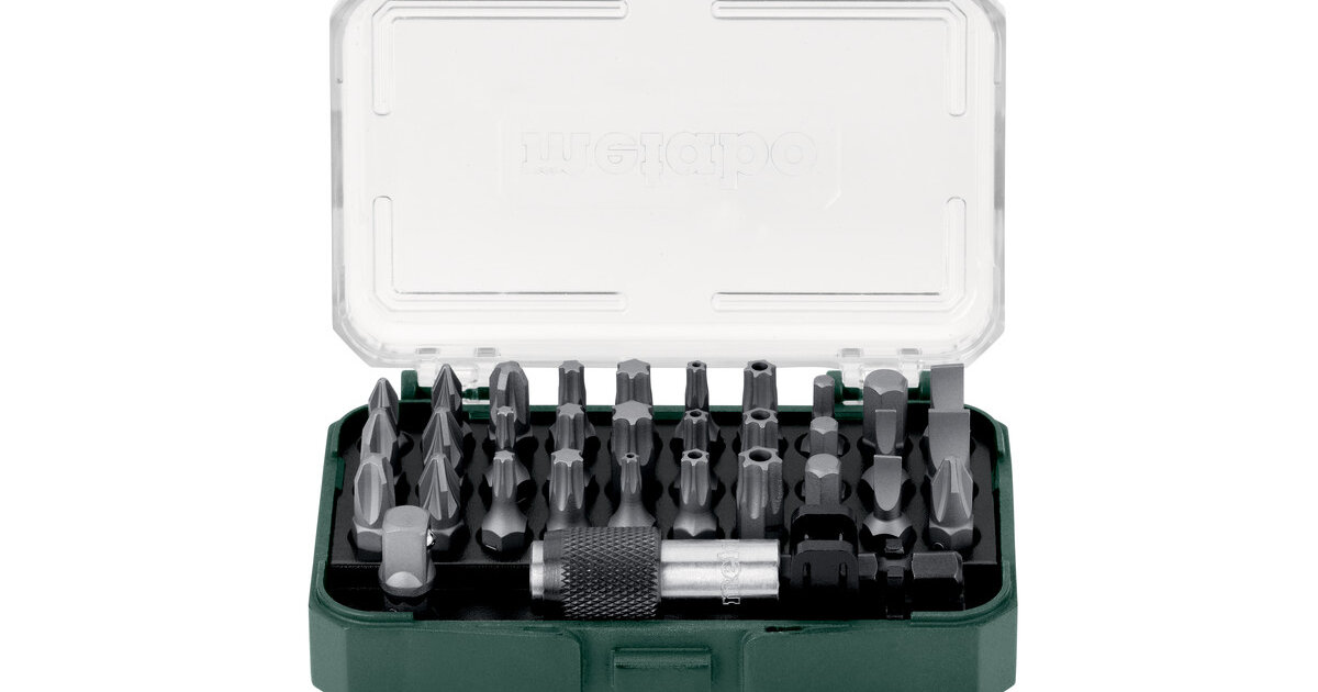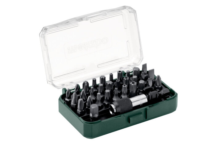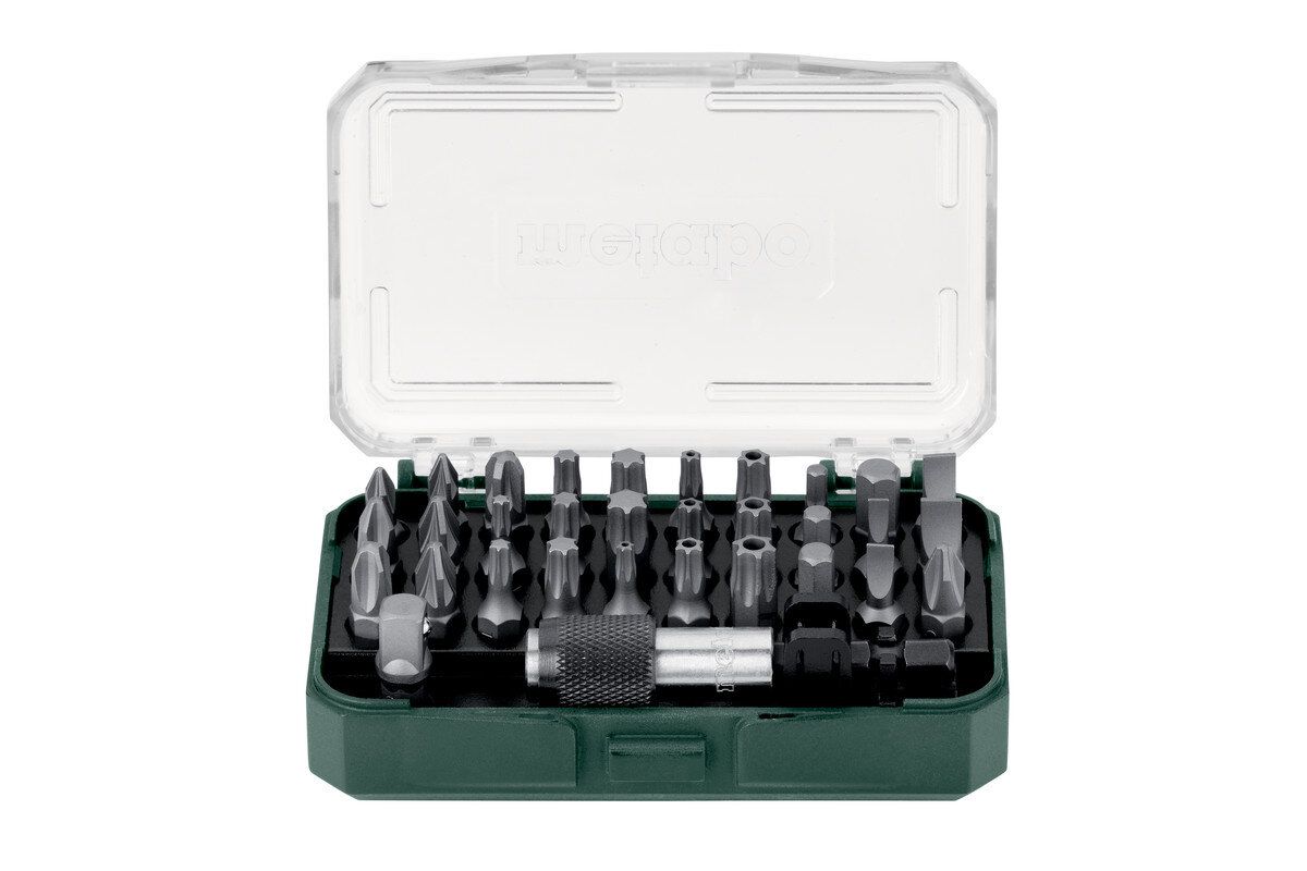 Складається з: iнструментальні насадки S 2, L = 25 мм(30 шт.) PH 1 x 1, PH 2 x 2, PH 3 x 1; PZ 1 x 1, PZ 2 x 2, PZ 3 x 1; SL 3, SL 4, SL 5, SL 6по 1 x H 3, H 4, H 5, H 6; T 10, T 15, T 20, T 25, T 27, T 30, T 40для гвинтів Torx-Tamper: по 1 x T 10, T 15, T 20, T 25, T 27, T 30, T 401x адаптер, 1x магнітний тримач інструментальних насадок, 60 ммБіти з хромованадієвої сталі (якість S2); магнітний тримач інструментальних насадок; з адаптером для змінних торцевих голівок (перехідник); високоякісний, міцний футляр у спеціальному дизайні Metabo