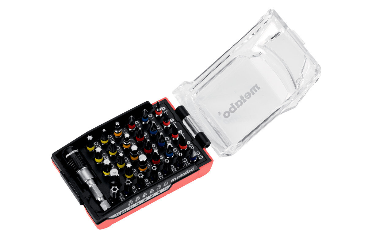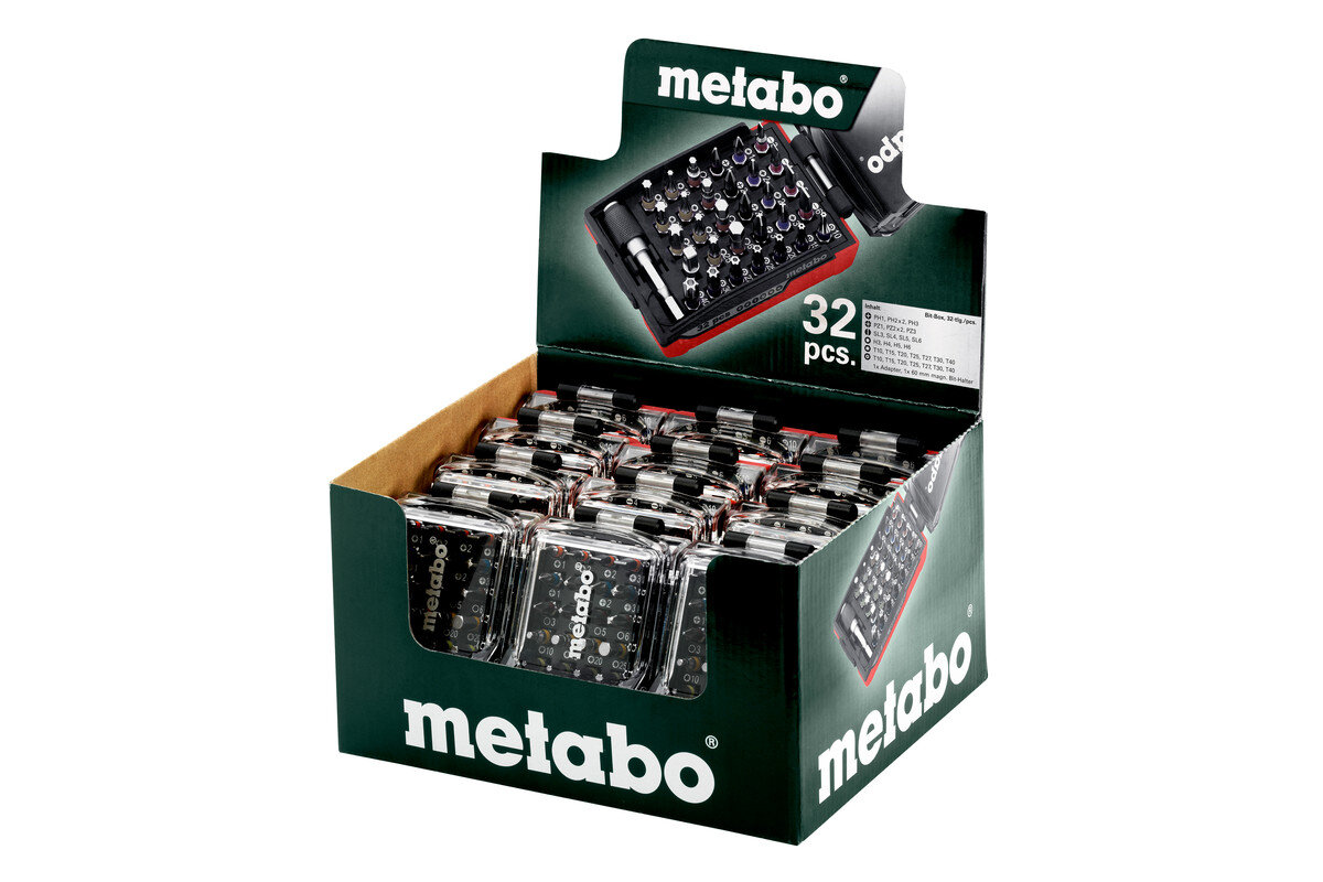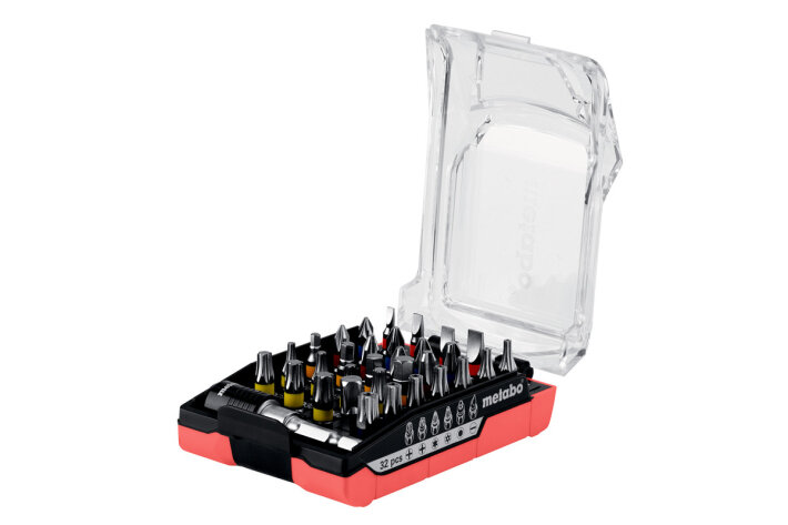 Складається з: iнструментальні насадки S 2, L = 25 мм(30 шт.) PH 1 x 1, PH 2 x 2, PH 3 x 1; PZ 1 x 1, PZ 2 x 2, PZ 3 x 1; SL 3, SL 4, SL 5, SL 6по 1 x H 3, H 4, H 5, H 6; T 10, T 15, T 20, T 25, T 27, T 30, T 40для гвинтів Torx-Tamper: по 1 x T 10, T 15, T 20, T 25, T 27, T 30, T 401x адаптер, 1x магнітний швидкозмінний тримач насадок 65 ммІнструментальні насадки з хромованадієвої сталі (якість S2); насадки з умовним фарбуванням: для швидкого та простого знаходження потрібної насадки; магнітний швидкозмінний перехідник; з адаптером для наборів торцевих ключів (перехідник для торцевих голівок); високоякісний міцний футляр у спеціальному дизайні Metabo-LiHD для акумуляторних інструментів