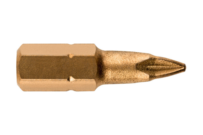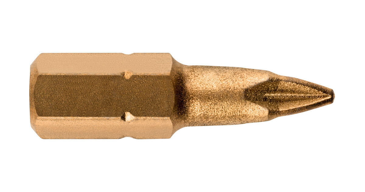 Інструментальні насадки (біти) з хромованадієвої сталі (якість S2) гарантують високу довговічність і надійне зчеплення з гвинтамиСпеціальне алмазне напилення для щільної посадки в голівці гвинта; зменшення ефекту «вискакування», що суттєво полегшує роботуТорсійна зона забезпечує згладжування піків крутного моменту, переймаючи на себе зусилля й коливання, що виникають при укручуванні. Стійкість до високих навантажень; захист від передчасного руйнуванняШестигранний хвостовик 1/4"