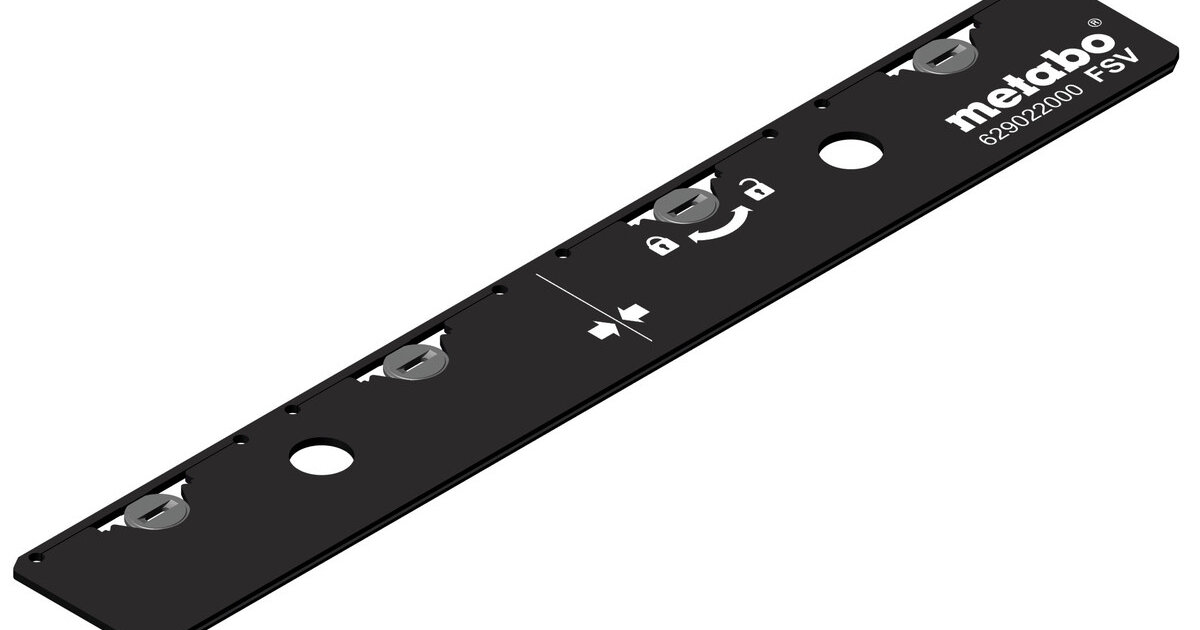Для з’єднання без інструментів двох напрямних шин для розпилювання заготовок великої довжиниПри зберіганні засовується в напрямну шинуПідходить для напрямних шин Metabo FS