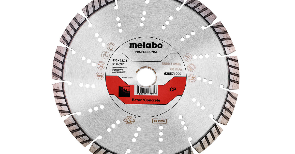 Потужний алмазний відрізний круг із сегментованим краєм для агресивного швидкого відрізання твердих матеріалів, з дуже великою продуктивністю відрізання і дуже добрим терміном експлуатаціїОсобливо добре пристосований для різання твердих матеріалів, таких як бетон (також армований), бетонні труби, бордюрний камінь, тверді пісковики, комбінована цегла, бетон з оголеним заповнювачем, завдяки спеціальним турбосегментамНайвищий рівень безпеки завдяки звареним лазером алмазним сегментам. Висота сегмента 12 мм.
