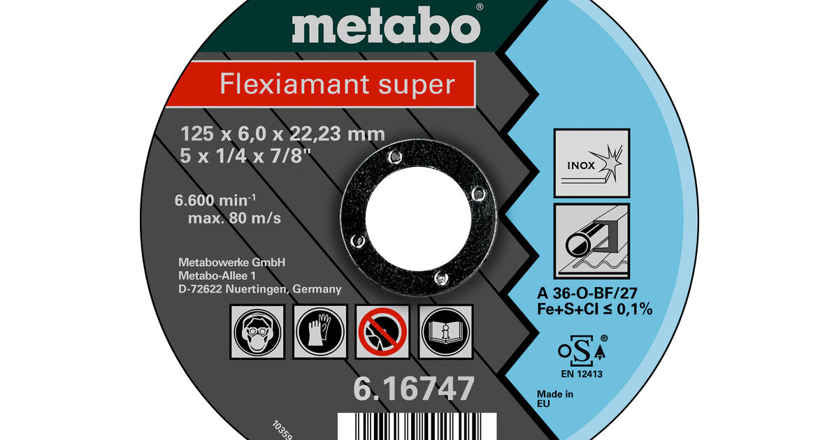 Спеціальний диск для обробки нержавіючої сталіЗ малим вмістом заліза та сірки Зображені інструменти можуть відрізнятися залежно від конфігурації оснащенням та технічними характеристиками.Враховуйте обсяг поставки та опис виробу.Приладдя входить до комплекту, лише якщо зазначено у обсязі поставки.