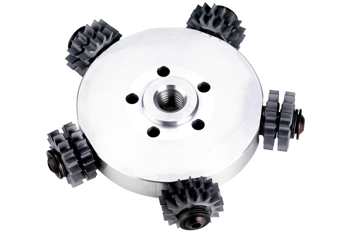 Фрезерна головка з гострими зубцями, в комплекті, з 10 твердосплавними зірочкамиДля видалення твердої штукатурки, бетону, пінистої основи, залишків клею, фарби на штукатурці, штукатурки на базі синтетичної смоли, еластичних захисних покриттів, штукатурки на балках, а також латексних та олійних фарб на штукатурціЗавдяки загостреній формі фрезерувальних зірочок поверхня стає шорсткоюПідходить для RFEV 19–125 RT