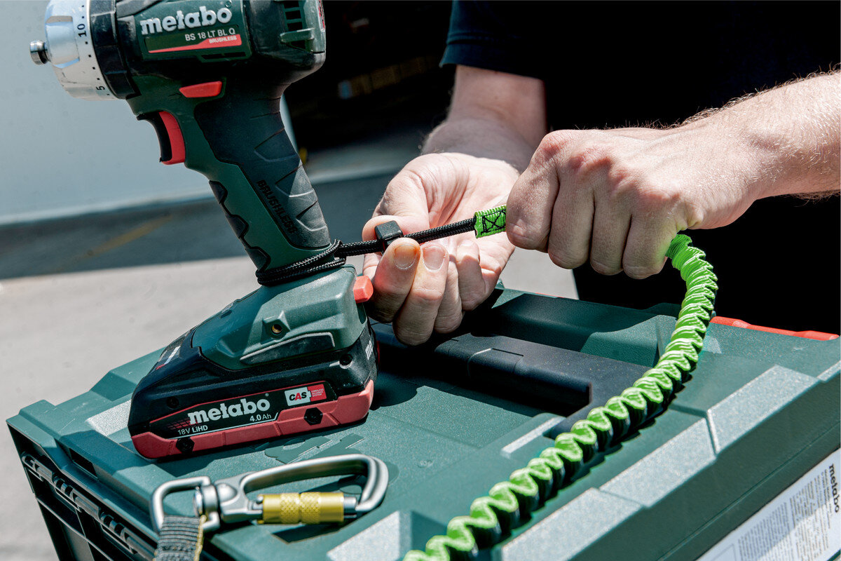 Міцний кріпильний ремінь для уникнення або пом'якшення удару в разі падіння закріпленого інструментаЗавдяки надійному з'єднанню карабінами з системою Twist-Lock неможливе випадкове вивільненняВисокий рівень свободи руху без перекручувань і зачеплень завдяки вбудованому шарнірному з'єднаннюЧітке вказання максимальної ваги, що може втримати системаСертифіковано за міжнародним стандартом безпеки ANSI/ISEA 121-2018Інші вироби для захисту від падіння можна знайти в асортименті приладдя Metabo для безпеки праці