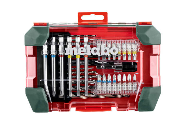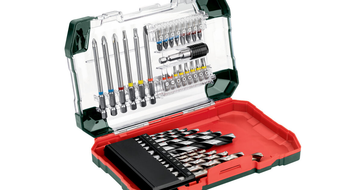 Складається з: насадки S 2L= 25 мм (16 шт.): PZ1, PZ2, PZ2, PZ3, PH1, PH2, PH2, PH3, T15, T20, T20, T25, T25, T30, SL3, SL5,5L= 89 мм (6 шт.): PZ1, PZ2, PH2, T20, T25, SL5,51 магнітний тримач інструментальних насадокСвердло по металу HSS-G: Ø 3/ 4/ 5/ 6/ 8/ 10 ммСвердло по дереву: Ø 3/ 4/ 5/ 6/ 8/ 10 ммІнструментальні насадки з хромованадієвої сталі (якість S2); насадки з умовним пофарбуванням: для швидкого та простого знаходження потрібної насадки; свердло по металу HSS-G, шліфоване, циліндричне, DIN 338, тип N, 135° перехресне заточення. Спіральне свердло по дереву з високосортної хромованадієвої сталі, загартоване, з центрувальним вістрям для використання при роботі з твердим та м’яким деревом, фанерою, ДСП тощо.