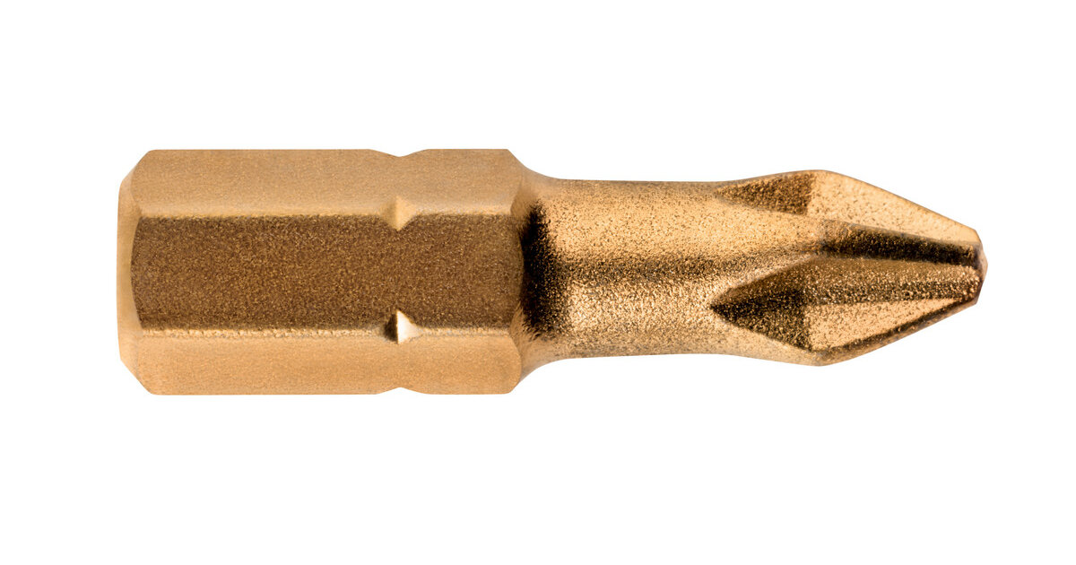 Інструментальні насадки (біти) з хромованадієвої сталі (якість S2) гарантують високу довговічність і надійне зчеплення з гвинтамиСпеціальне алмазне напилення для щільної посадки в голівці гвинта; зменшення ефекту «вискакування», що суттєво полегшує роботуТорсійна зона забезпечує згладжування піків крутного моменту, переймаючи на себе зусилля й коливання, що виникають при укручуванні. Стійкість до високих навантажень; захист від передчасного руйнуванняШестигранний хвостовик 1/4"