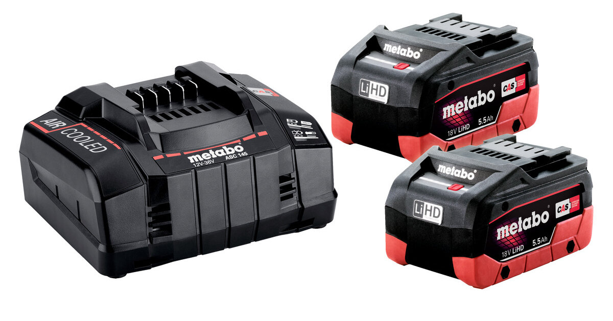 2 акумуляторні блоки LiHD 18 В / 5,5 А·годШвидкозарядний пристрій ASC 145