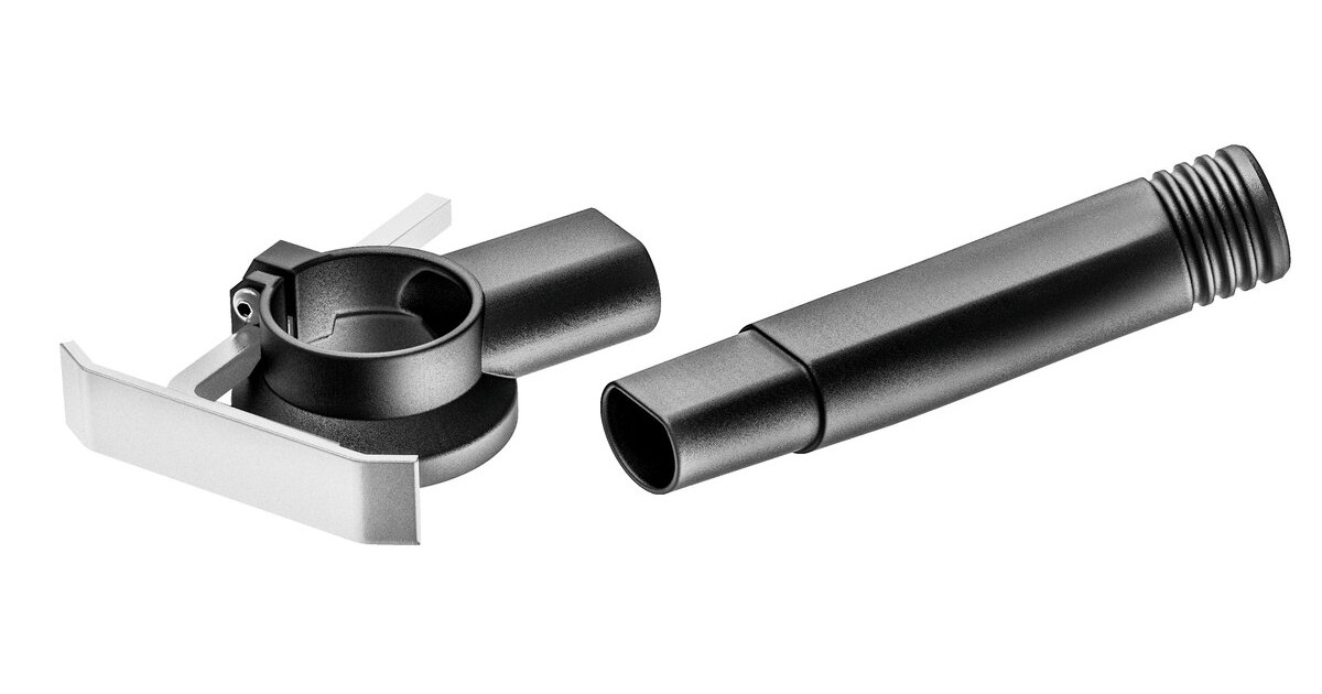 Обмежувач глибини для точної глибини обробки та роботи поблизу краю: простий і швидкий монтаж, із налаштуванням кутаВсмоктувальний патрубок для всмоктування пилу: може використовуватися з обох боків машини