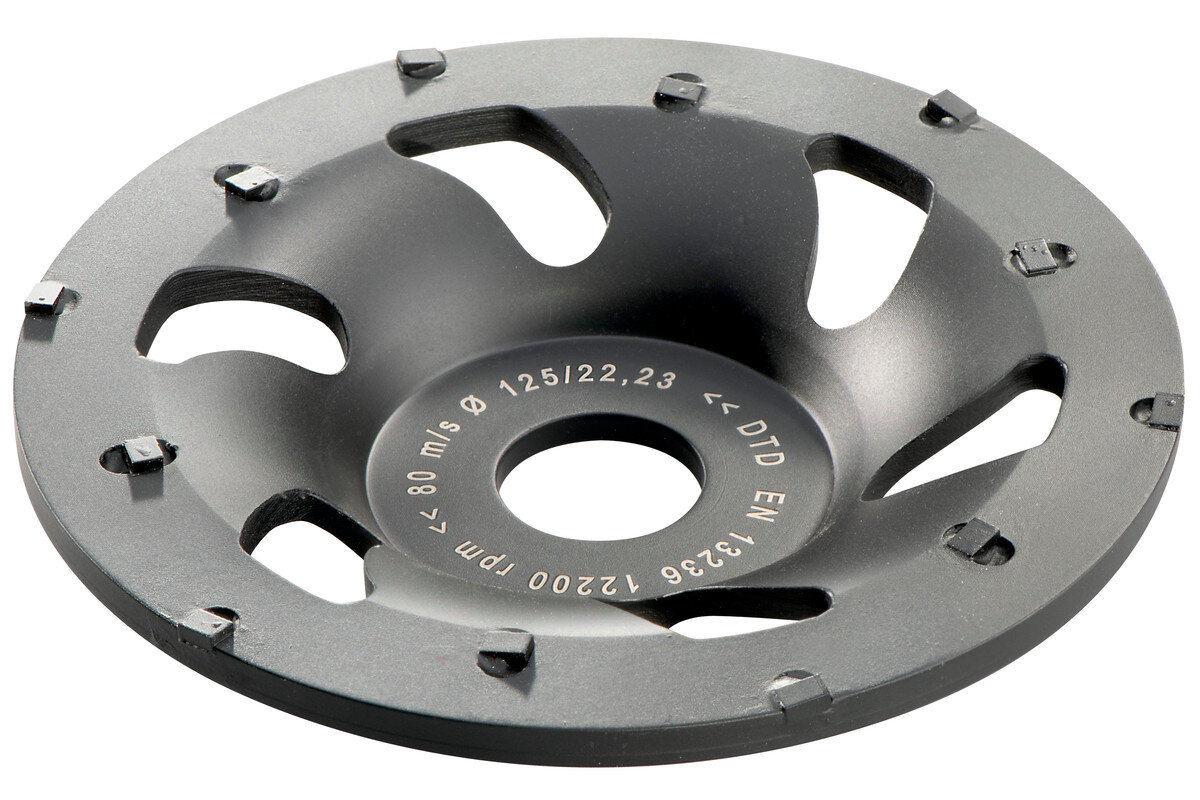 Особливо потужний спеціальний чашковий шліфувальний диск з полікристалічних алмазівЧудово пристосований для підшліфовування й зішліфовування еластичних захисних покриттів, клеїв і ущільнювачів. Видалення латексних і олійних фарб, бітумів, ПУ/поліуретану, епоксидних смол і еластичних клеїв. Зфрезеровування вапняної й гіпсової штукатурки. Пришліфовування штукатурки на основі синтетичної смоли і твердої цементної штукатурки.Швидке й ефективне зняття без приклеювання, на основі сегментів з PKD (полікристалічними алмазами)Максимальна робоча швидкість 80 м/с
