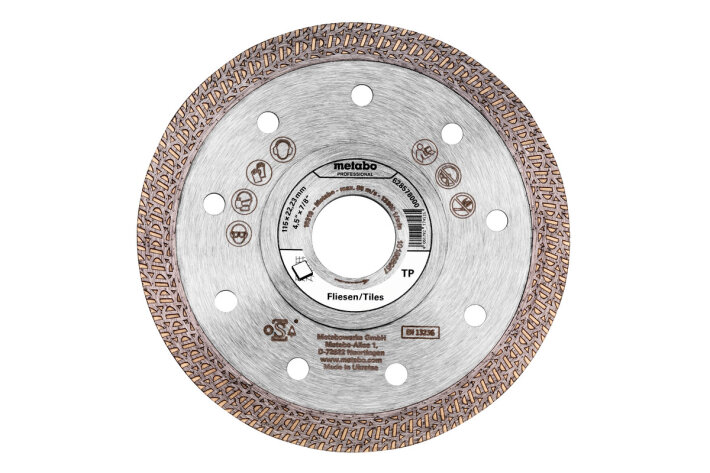 Потужний алмазний відрізний круг з закритим краєм для відрізання без викришування по краях заготовок з високоякісною поверхнею, з високою продуктивністю відрізання і дуже добрим терміном експлуатаціїШвидке отримання результатів різання з високим рівнем чистоти завдяки надзвичайно малій товщині полотна зі зміцнювальним сталевим осердям і особливою формою різального краюОсобливо підходить для: плитки грес, керамічної плитки, плит з природного каменюВисота сегмента 10 мм
