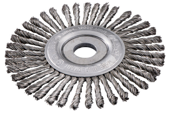 Спеціально розроблені для професійної обробки U- і V-подібних зварних швів в трубах і при прокладенні трубопроводів, а також для підготовки кореня шва до зварюванняВид щетини: заплетений сталевий дрітТовщина джгута: 6,0 мм