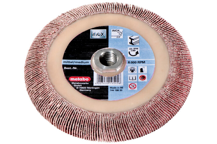Пластинчатий шліфувальний круг з прямими профільованими пластинами особливо придатний для обробки кутових зварювальних швів. Профільовані пластини, розташовані радіально у формі віяла, дуже добре підходять до контурів деталі. Ідеально пасує для отримання рівномірних зварювальних швів. Вигнута форма забезпечує використання також в важкодоступних місцях.Висока потужність знімання при довгому терміні експлуатації завдяки використанню керамічного зернаВідмінні результати при шліфуванні поверхонь та країв звичайної та високосортної сталі. Завдяки здатності витримувати високі навантаження ідеальний для найважчих шліфувальних робіт, таких як обробка високолегованої сталі, титанових сплавів, сплавів з нікелю, а також хромової та хромонікелевої сталі, латуні та бронзи.Шліфування без нагрівання для матеріалів з поганою теплопровідністюМакс. число обертів: 10000 об/хв