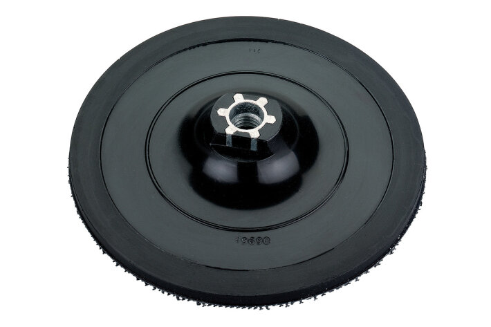 З липучками та гнучким проміжним шаром з формованого спіненого матеріалу; для кріплення полірувальних та шліфувальних інструментівШліфувальний тарілчастий круг для полірування і шліфувальних робіт середньої складності. Особливо рекомендується для шліфувальних аркушів на липучках Metabo Pyramid