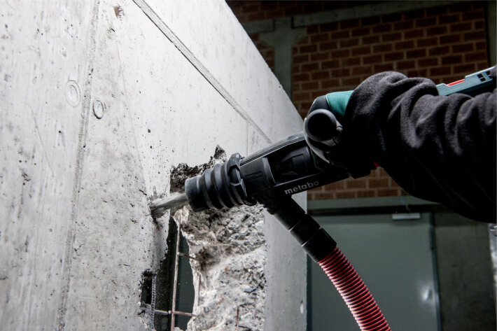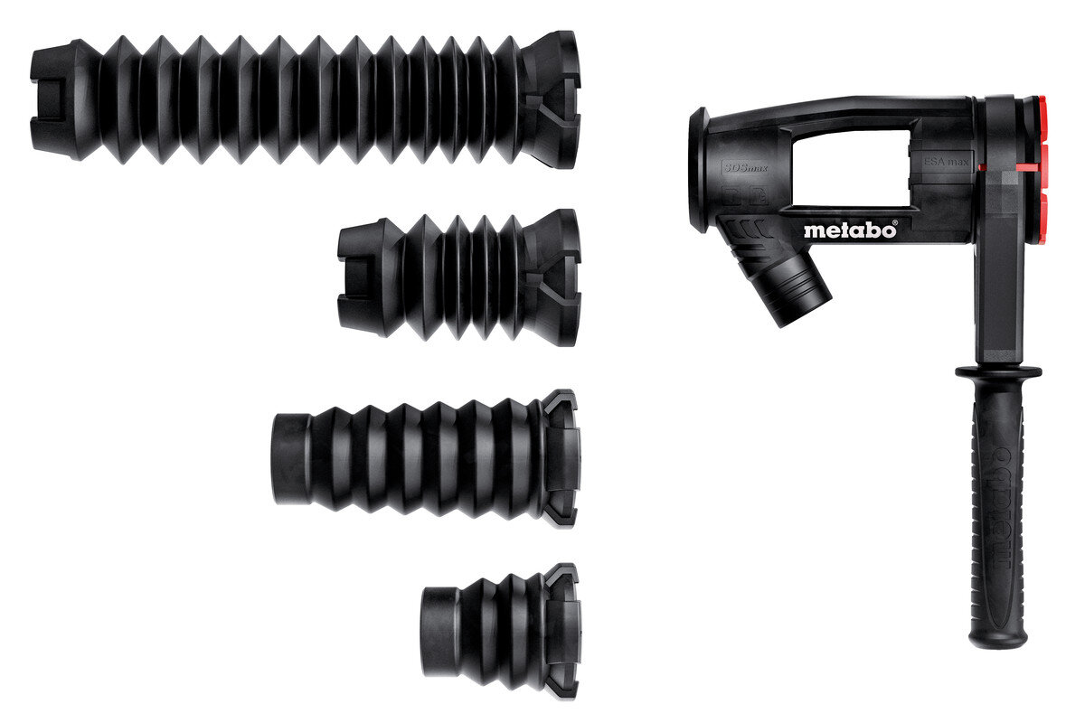 Для свердління та довбання — завдяки різноманітним насадкам — свердла Ø 16–52 мм, шпилясті та пласкі долота до 25 ммМонтаж без використання інструментів — свердла та долота можна змінювати без знімання системи для відведення пилуСумісність зі всіма новими перфораторами Metabo SDS-max у поєднанні зі всіма витяжними пристроями Metabo M та HЗовнішній пристрій для відведення пилу