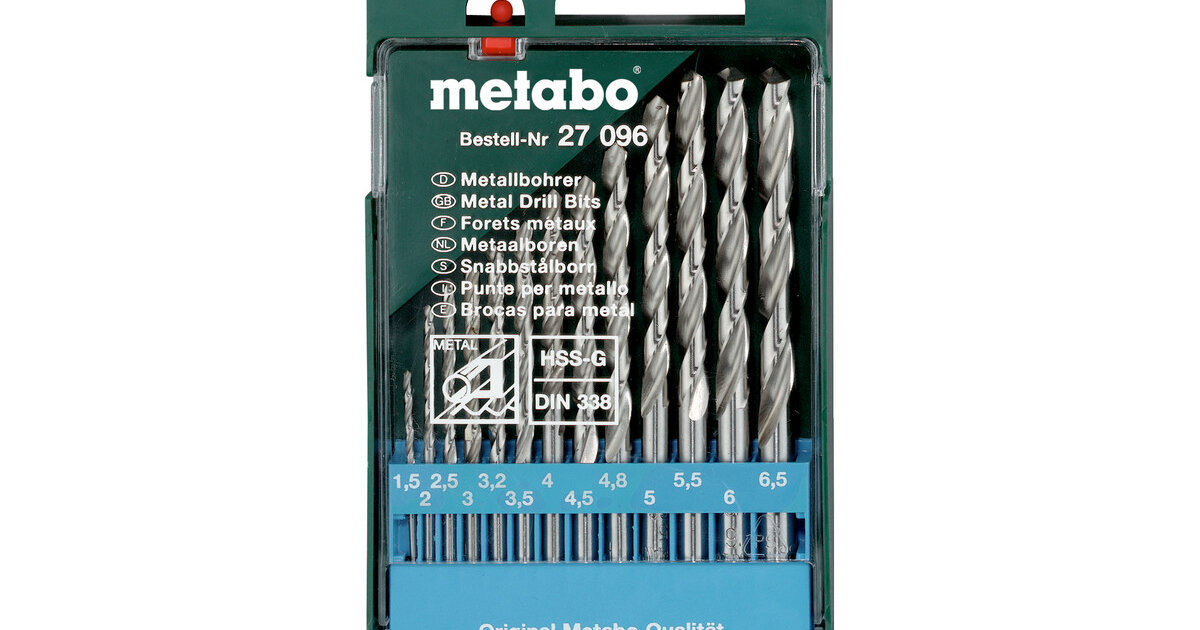 Високоточне спіральне свердло з високоефективної швидкорізальної сталі згідно з DIN 338, шліфоване з високою точністю, циліндричне, праворізне, тип NПерехресне заточення 135° згідно з DIN 1412 C (від 3 мм), допуск/діаметр h8Поверхня нефарбованаДля високих навантажень та точності в промисловості та майстерняхДля свердління сталі та сталевого лиття, легованого та нелегованого, чавуна, ковкого чавуна, чавуна із сферичним графітом, металокераміки, нейзільбера, графіту, кольорових металів, пластика. Опір розриву до 900 Н/мм².13 предметів, у пластиковій касетіØ 1,5 / 2 / 2,5 / 3 / 3,2 / 3,5 / 4 / 4,5 / 4,8 / 5 / 5,5 / 6 / 6,5 мм
