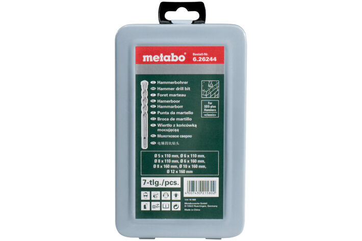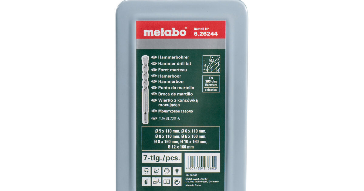 Бури SDS-plus з високоякісним твердосплавним вістрямДинамічна долотчаста свердлильна головкаВелика спіраль у формі S для швидкого відведення крихт та пилуВисока продуктивність свердління та довговічністьДля бетону, цегляної кладки, природного каменюв металевій касетіØ 5, 6, 10 мм, L = 110 мм / Ø 6, 8, 10, 12 мм, L = 160