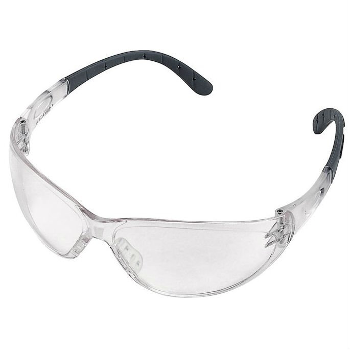 Захисні окуляри з ударостійким покриттям із внутрішньої сторони. Прозорі окуляри є оптимальними для використання при слабкому сонячному світлі. Чи не пітніють. М'які накладки на кінцях дужок. Бічний захист. Стійкість до подряпин. 100% УФ-захист. Стандарт EN 166. Клас захисту F (45 м/с). Вага – 26 р.