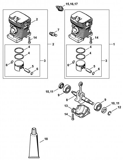 Поршень у зборі для бензопили Stihl MS 180, діаметр 38 мм.